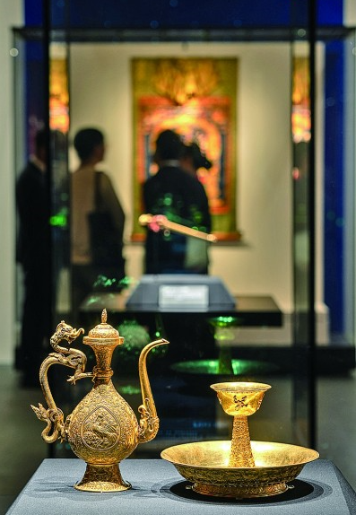 布达拉宫珍藏着许多古籍文献、壁画、唐卡、雕塑、法器及瓷玉器。这些珍藏的艺术品是布达拉宫不可或缺的组成部分,具有独特的历史、艺术、宗教价值和文化意义。展览“珍宝”部分由“御赐珍宝”“艺以载道”“宫廷风华”“金刚法舞”四个单元组成,展现布达拉宫馆藏珍宝所承载的厚重文化。